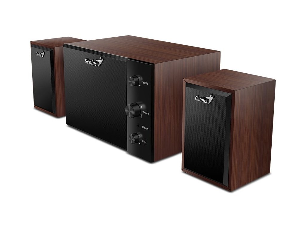 Dřevěný reproduktorový systém v konfiguraci 2.1 s celkovým výkonem 15 W. 4" subwoofer nabízí dokonale hluboké basy a dva 2" satelity zajistí vysoké vokály. Na předním panelu se nachází samostatné ovládání hlasitosti, basů a výšek. Připojení je realizováno pomocí 3,5 mm jack konektoru.