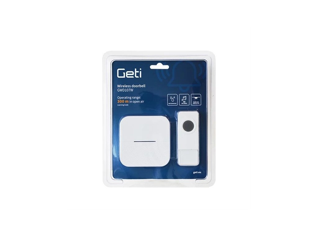 Spolehlivý zvonek GETI GWD107W se hodí nejen k domu či bytu, ale také do kanceláří, továren či recepčních hal. Velkou předností tohoto zvonku je jeho bezdrátové provedení s dosahem až 300 m ve volném prostoru. Instalace zvonku je velmi snadná, spárování mezi vysílačem a zvonkem probíhá automaticky. Funkce LEARNING CODE navíc umožnuje vzájemné spárování více tlačítek a zvonků. Nemusíte se obávat ani deštivého počasí, tlačítko vysílače s LED indikací je voděodolné. Zvonek má jednoduchý moderní design, 5 stupňů hlasitosti, výběr z 58 vyzváněcích melodií a světelnou signalizace zvonění. Velkou výhodou zvonku je zapamatování si nastavené melodie a hlasitosti i po odpojení přístroje od elektrické sítě.