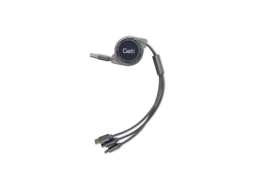 Geti kabel GCU 04 USB 3v1 stříbrný samonavíjecí