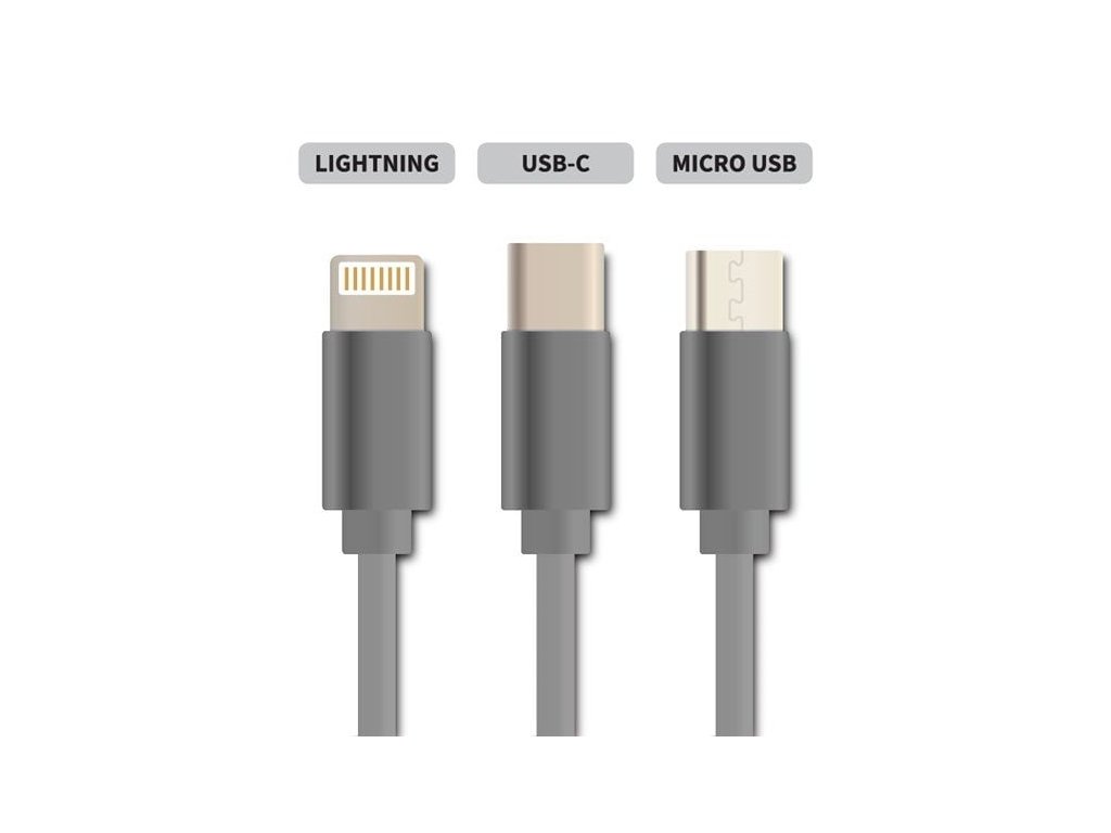 Umožňuje nabíjení až tří zařízení současně s podporou rychlého nabíjení pomocí max. proudového toku 2 A. Povrchový materiál a plochý tvar zaručuje snadnou manipulaci a dlouhou životnost kabelu.