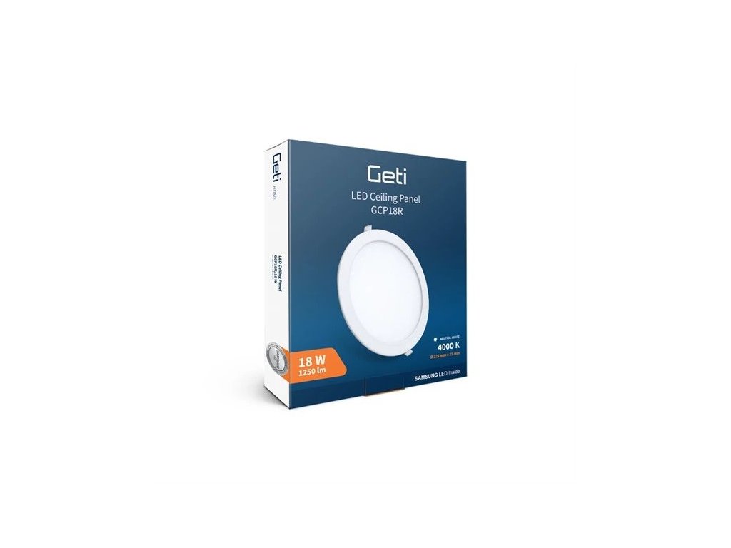 LED světelný panel Geti GCP18R je určen pro montáž do sádrokartonových podhledů nebo stěn. Oproti tradičním zářivkovým svítidlům nabízí LED panel velmi příjemné světlo, nízkou spotřebu elektrické energie a jednoduchou instalaci. Je osazen kvalitními SAMSUNG LED čipy se 100% světelným výkonem hned po zapnutí a je dodáván včetně napájecího transformátoru.