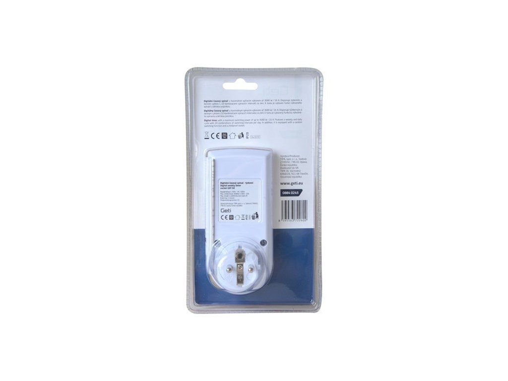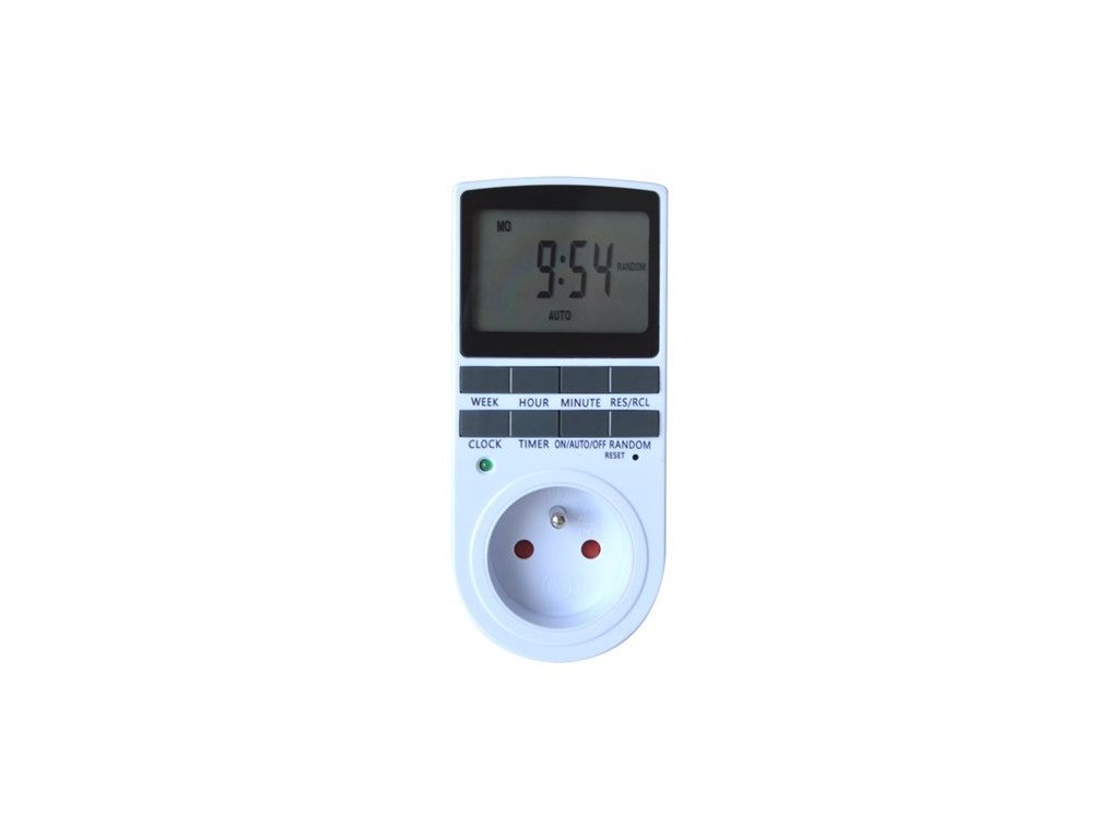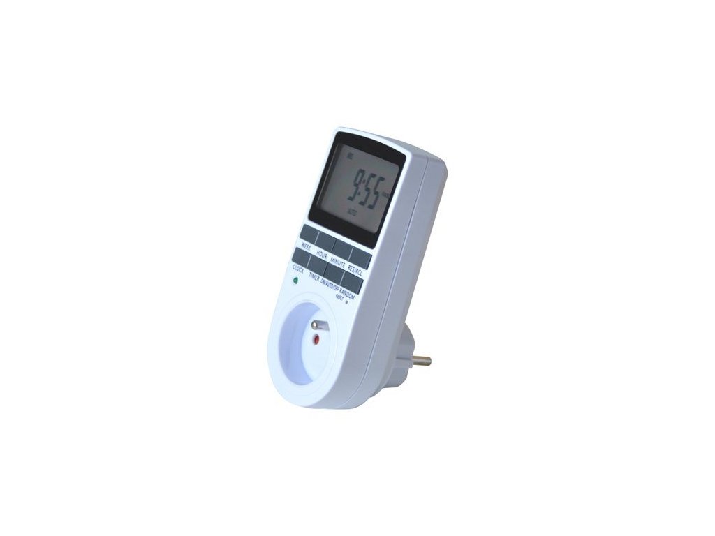 Pomocí této digitální spínané zásuvky můžete v nastavených časech vypínat a zapínat síťové spotřebiče. Zásuvka má denní i týdenní spínací cyklus, velmi jednoduché ovládání a vestavěné funkce DST (letní čas) a RANDOM (náhodné spínání). Disponuje týdenním a denním cyklem s 10 kombinacemi spínacích intervalou za den. Max. spínaný výkon časového spínače je 3680W.