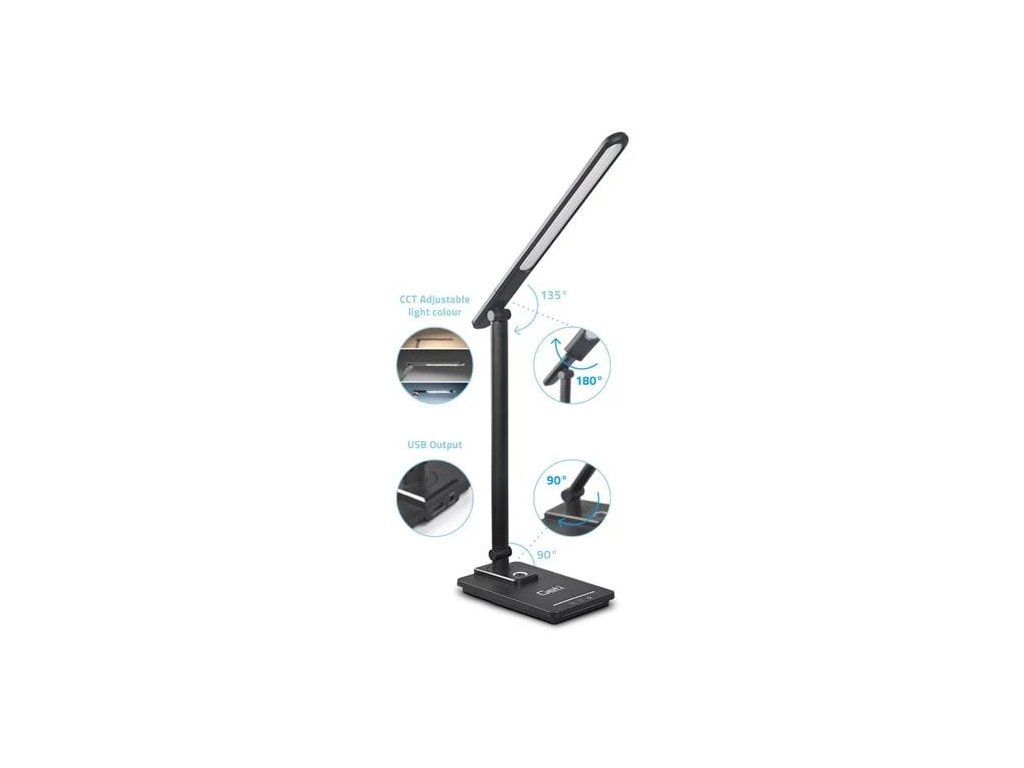 Stolní svítidlo GETI GTL104B je ideálním osvětlením do vašich kanceláří, pracoven, dětských pokoju a všude tam, kde je potřeba spolehlivé a efektivní osvětlení pracovního prostoru. Lampa disponuje možností nastavení teploty světla - bílá teplá, přírodní a studená barva a 5 stupni intenzity světla. USB A port vám umožní nabíjení telefonů nebo jiných zařízení.