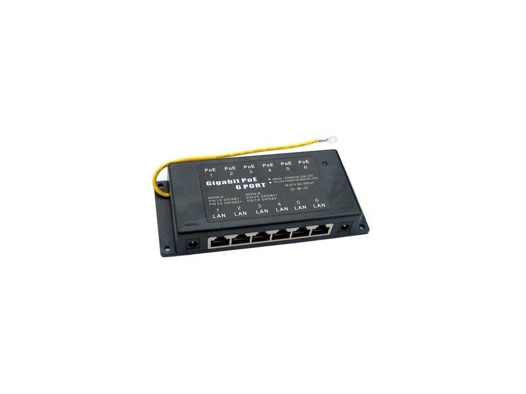 Panel integrující 6 gigabitových stíněných pasivních POE injektorů s napájecím rozsahem 18-57V.