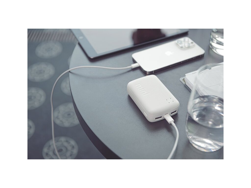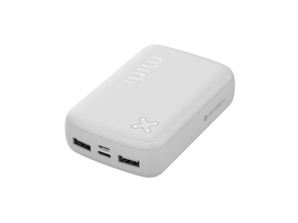 Power Bank GoGEN 10 000 mAh, vstupy micro USB / USB-C, výstupy 2xUSB, LED indikátor, kapesní provedení, bílá barva