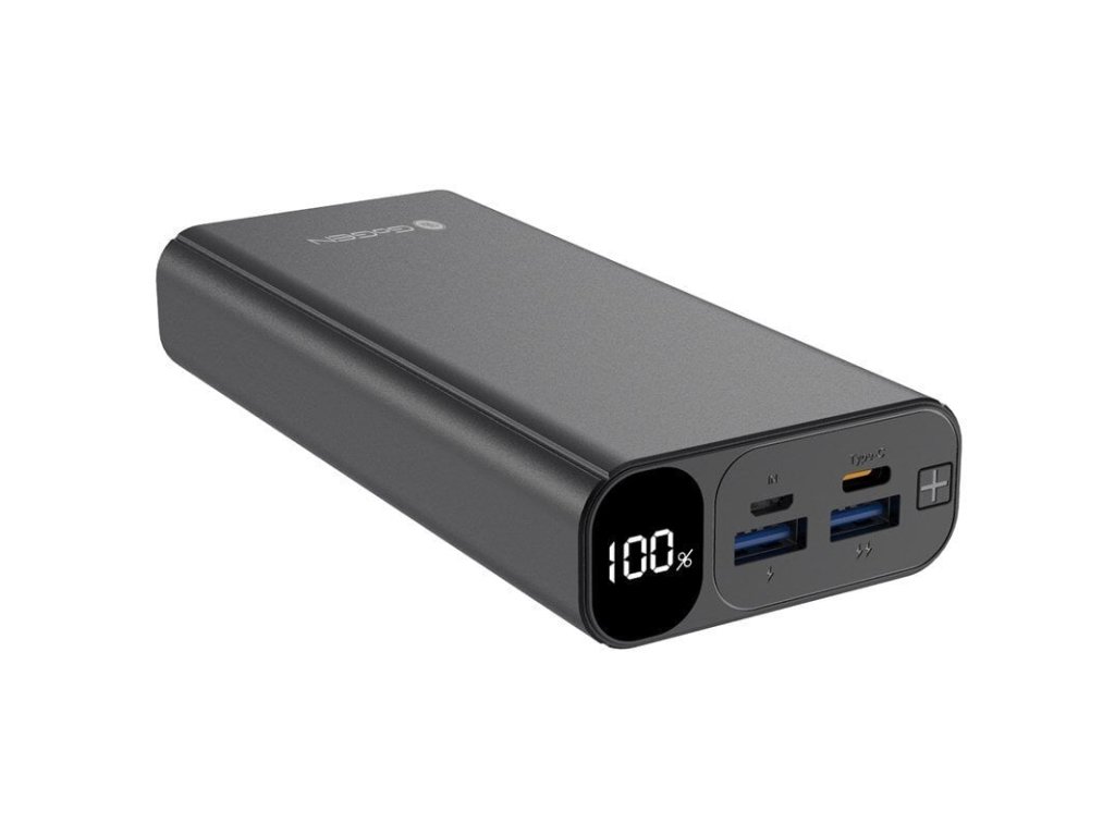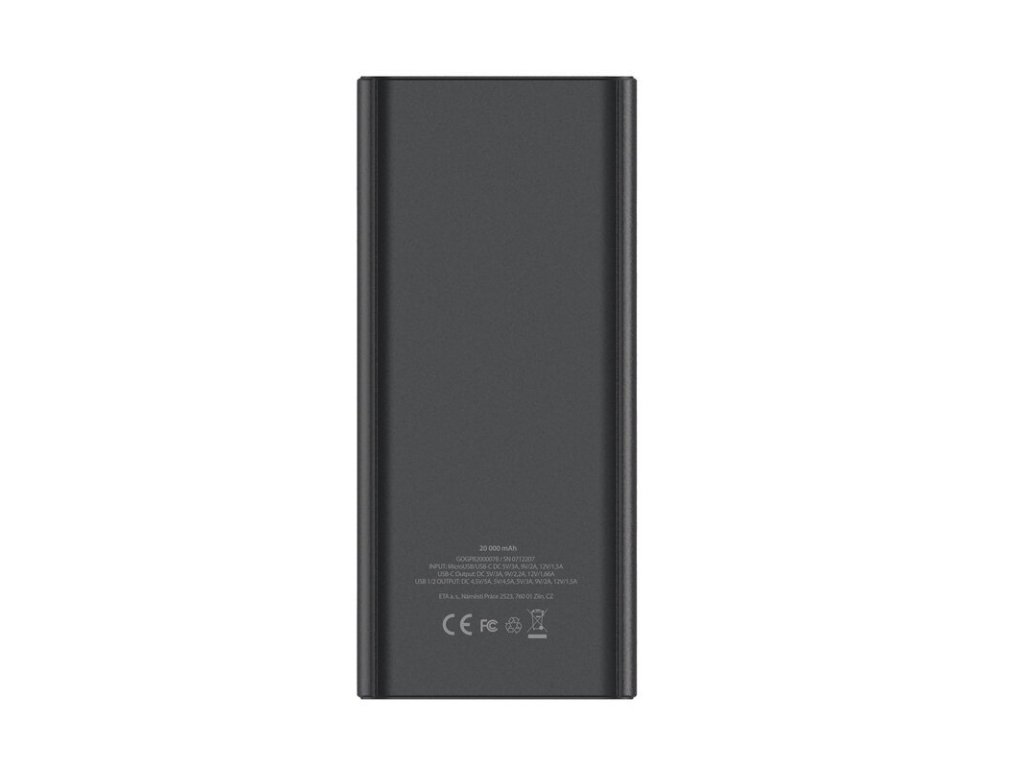 Power Bank GoGEN 20 000 mAh, vstupy micro USB / USB-C, výstupy USB-C / 2xUSB, Power Delivery, hliníkové provedení, LED displej, černá barva