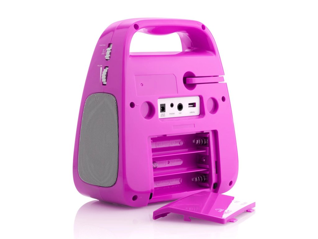 Přehrávač pro děti lze napájet adaptérem, který je součástí balení, nebo bateriemi. Postará se tedy o báječnou show v dětském pokojíčku, na zahradní párty, ale zabaví děti i na cestách a rodinné dovolené. Zkrátka ideální společník!