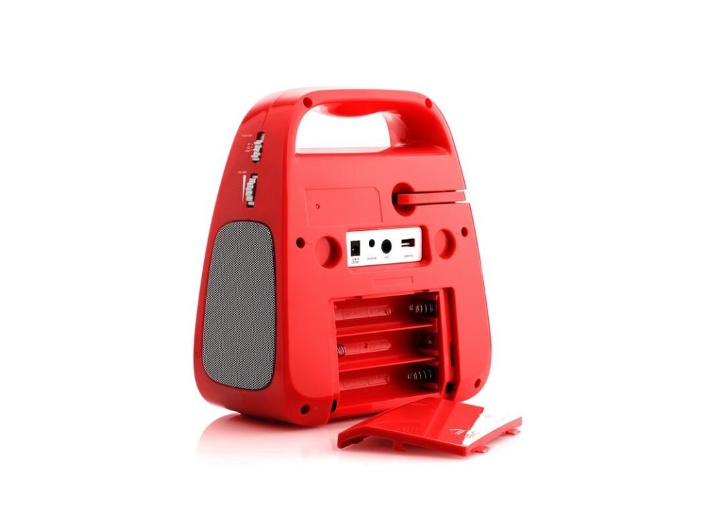 jsou dva reproduktory o výkonu 1,2 W. Na straně přístroje najdete i ovládání hlasitosti a jednotlivých funkcí. Na zadní straně přehrávače Déčko KARAOKE je i prostor pro uložení baterií, takže přehrávač můžete vzít s sebou i do parku nebo na hřiště.