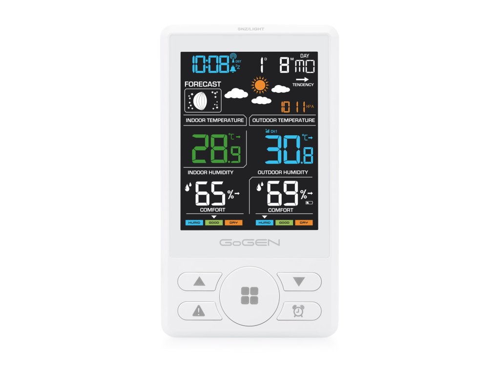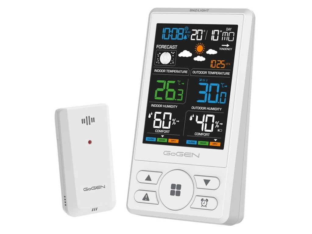 Meteorologická stanice, externí čidlo v balení, předpověď počasí, vnitřní/venkovní teplota a vlhkost, čas řízený rádiovým signálem, záruka 4 roky po registraci