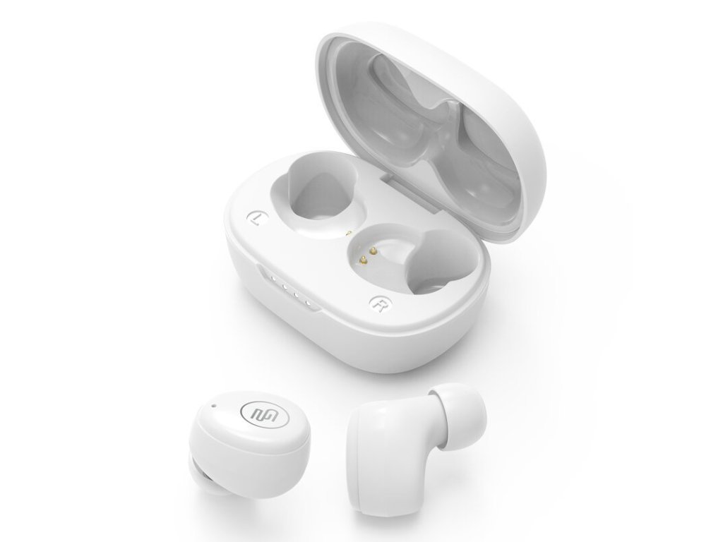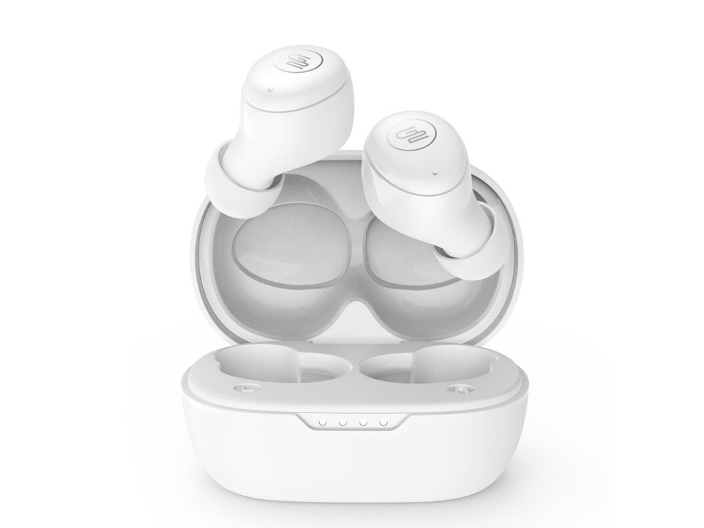 True Wireless Stereo sluchátka, Bluetooth® v 5.1, výdrž baterie 7 + 21 hodin, IPX5, nabíjecí pouzdro, bílá barva