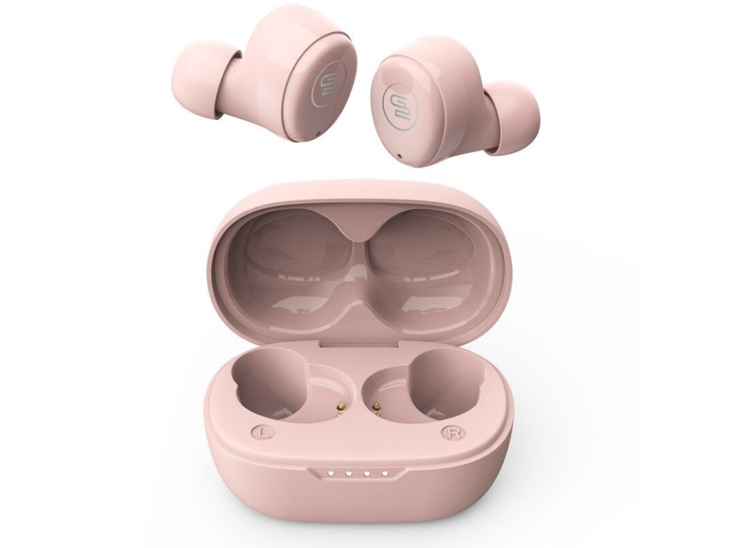 True Wireless Stereo sluchátka, Bluetooth® v 5.1, výdrž baterie 7 + 21 hodin, IPX5, nabíjecí pouzdro, růžová barva