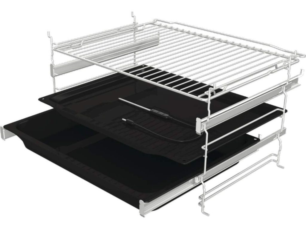 Dvířka trouby jsou vybavena speciálními závěsy SoftOpen a GentleClose, takže k plynulému otevření nebo zavření stačí jemný dotyk. Má také teleskopické nástavce, které zajišťují bezpečnou manipulaci. Vysouvají se do 3 mimo troubu, takže manipulace s horkými pánvemi je snadná, ale hlavně bezpečná.
