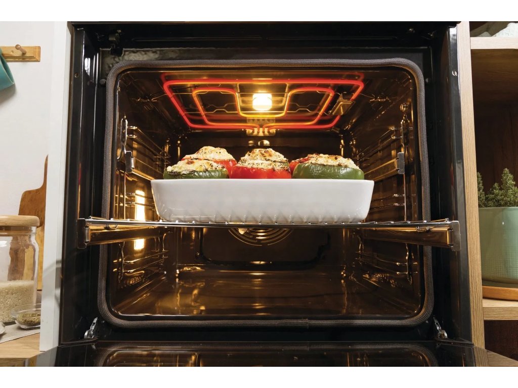 Současně můžete v troubě Gorenje péct i více pokrmů najednou a nebát se, že by docházelo k mísení pachů nebo nerovnoměrnému opékání. Speciální tvar trouby a promyšlená cirkulace horkého vzduchu zajišťuje rovnoměrné pečení pokrmů na všech úrovních. Pro snazší používání je vestavná trouba Gorenje BSAX6747A26BG vybavena teleskopickými výsuvy, abyste mohli jednoduše plechy vysunout, zkontrolovat pokrm a zase vrátit, nebo naopak bez potíží plech vytáhnout.