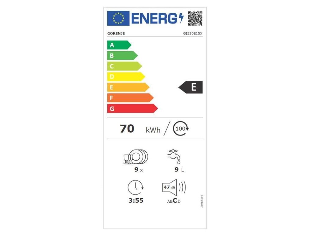 Vestavná myčka nádobí Gorenje GI520E15X o šířce 45 cm v energetické třídě E umyje 9 sad nádobí. Vybavena je samočisticím filtrem, funkcí AquaStop a funkcí 3 v 1.