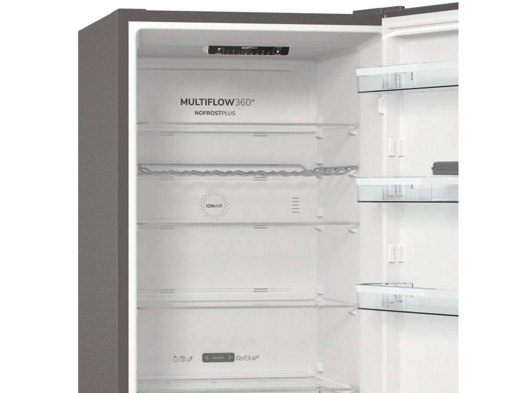 Volně stojící kombinovaná lednička v energetické třídě C s objemem 361 l, elektronickým ovládáním a šetrným LED osvětlením. Gorenje NRC620CSXL4 je vybavena invertorovým kompresorem, IonAir s Multiflow 360° a beznámrazovou technologií NoFrost Plus.