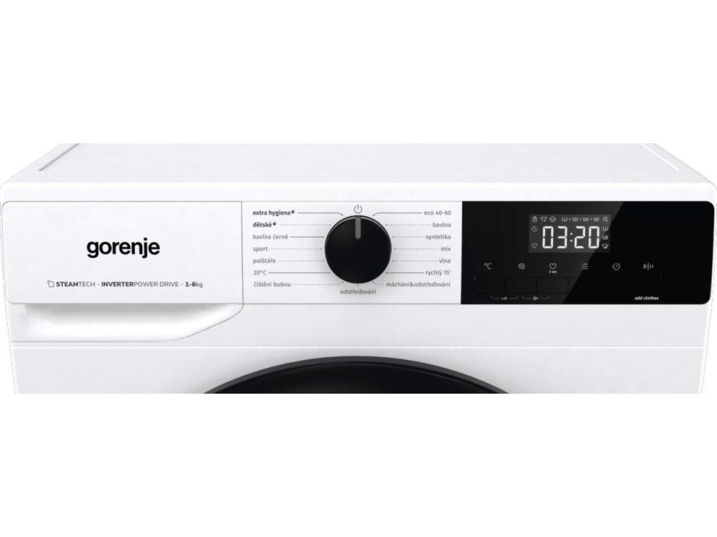 Automatická pračka Gorenje W2NHEI62SAS je vybavena ovládacím panelem s otočným knoflíkem a dotykovými tlačítky.