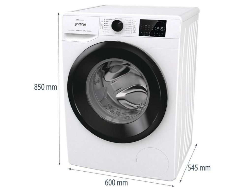 Volně stojící předem plněná pračka, barva bílá s černými dvířky, kapacita 9 kg, 1400 ot./min., enregetická třída A, technologie Aqua JetWash, SoftSound, šířka 60 cm, hloubka 54,5 cm.