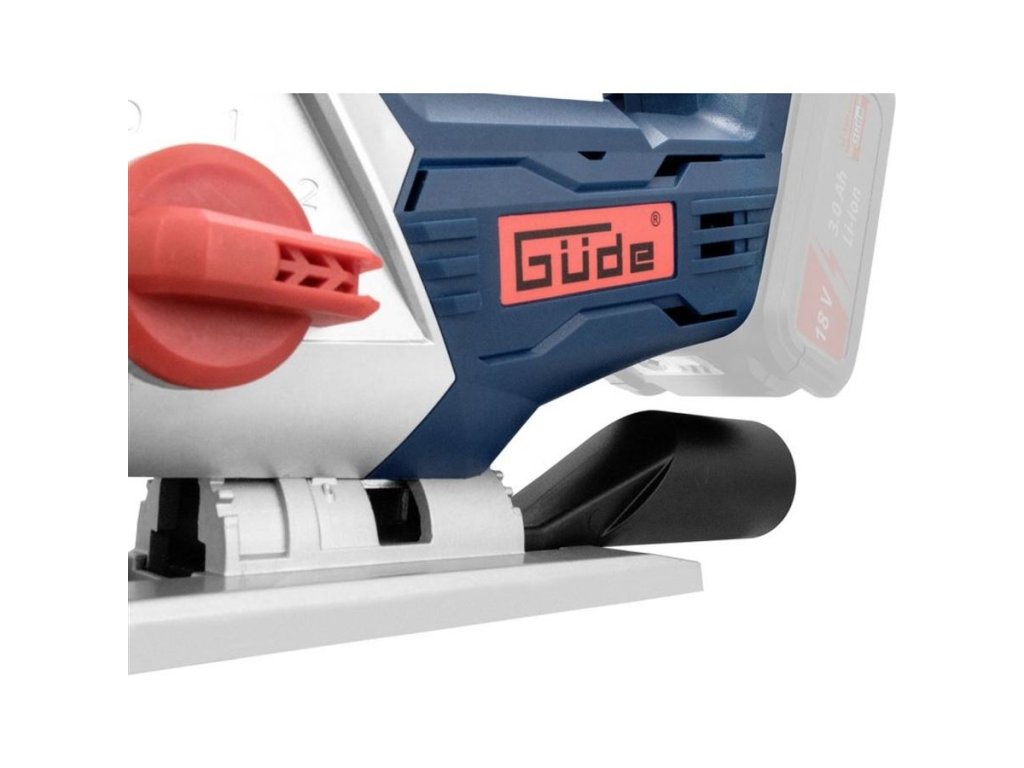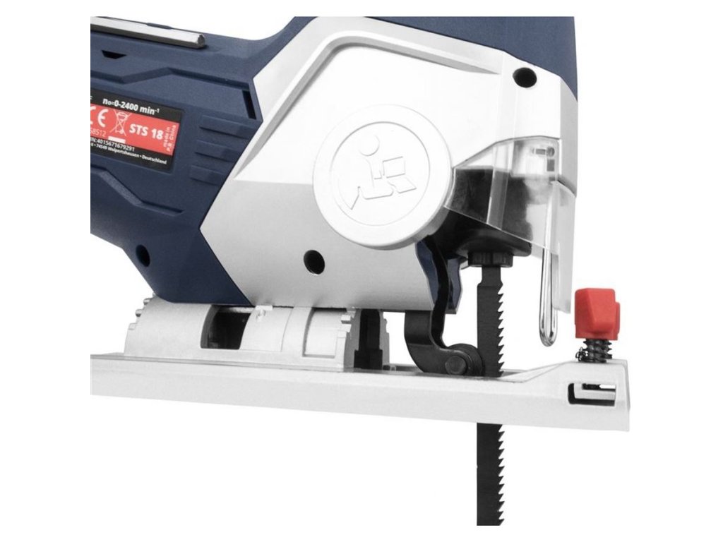 Funkce: přímé řezy, křivkové řezy, řezy na pokos do 45°, Lithium-iontová technologie 18 V E3, rychloupínací nástrojový držák, 3 + 1 stupně předkmitu, elektronická regulace otáček.