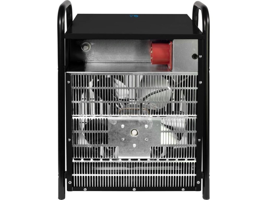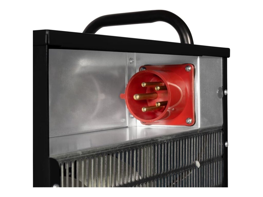Výkonné elektrické topidlo, určené k vytápění komerčních prostor (autodílny, skladové/montážní haly, průmyslové provozy), bodovému vyhřívání venkovních pracovišť, rozmrazování strojů, vozidel apod. Skříň topidla z oceli, zástrčka 400V.