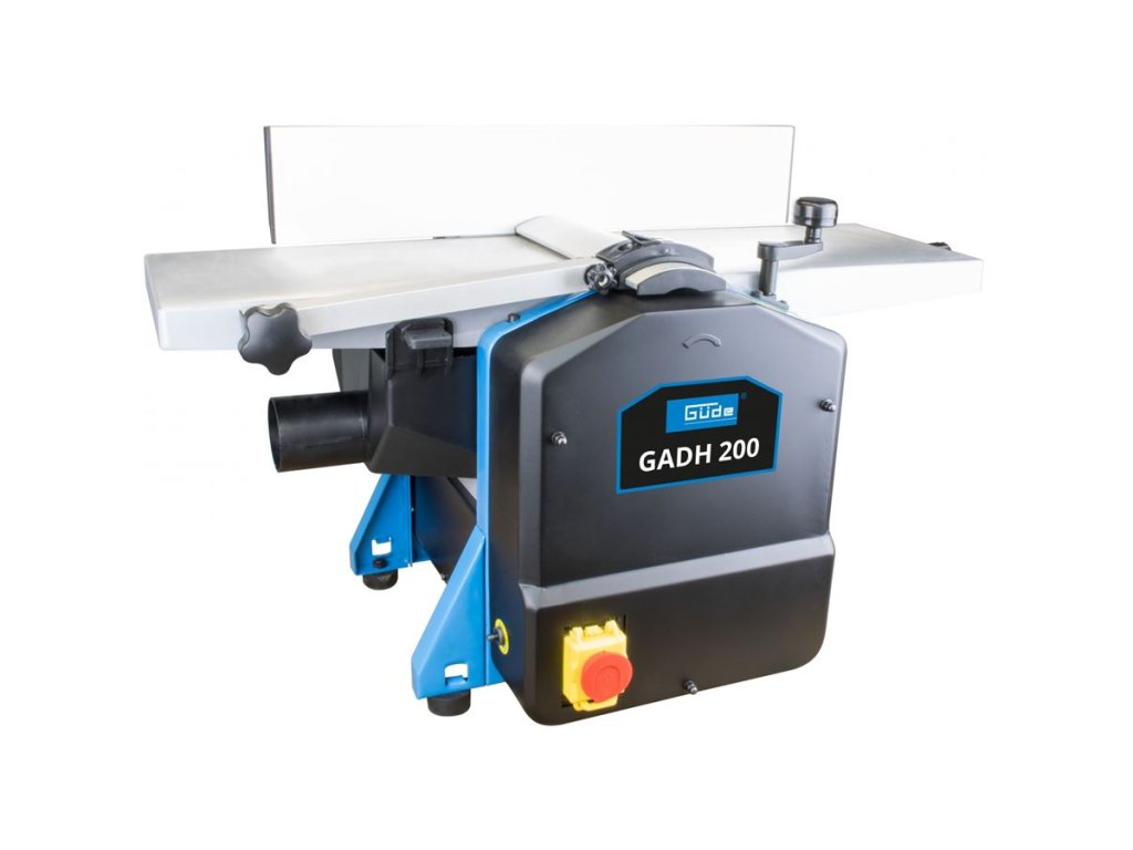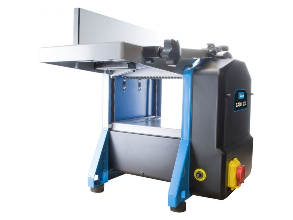 Konstrukce: hliníkový hoblovací stůl (-> d x š: 737 x 210 mm), ochranný kryt nožové hřídele, výsuvná opěrka obrobku, HSS řezné nože (2), přípojka odsávání, stojné nožky s gumovými patkami.