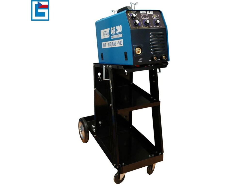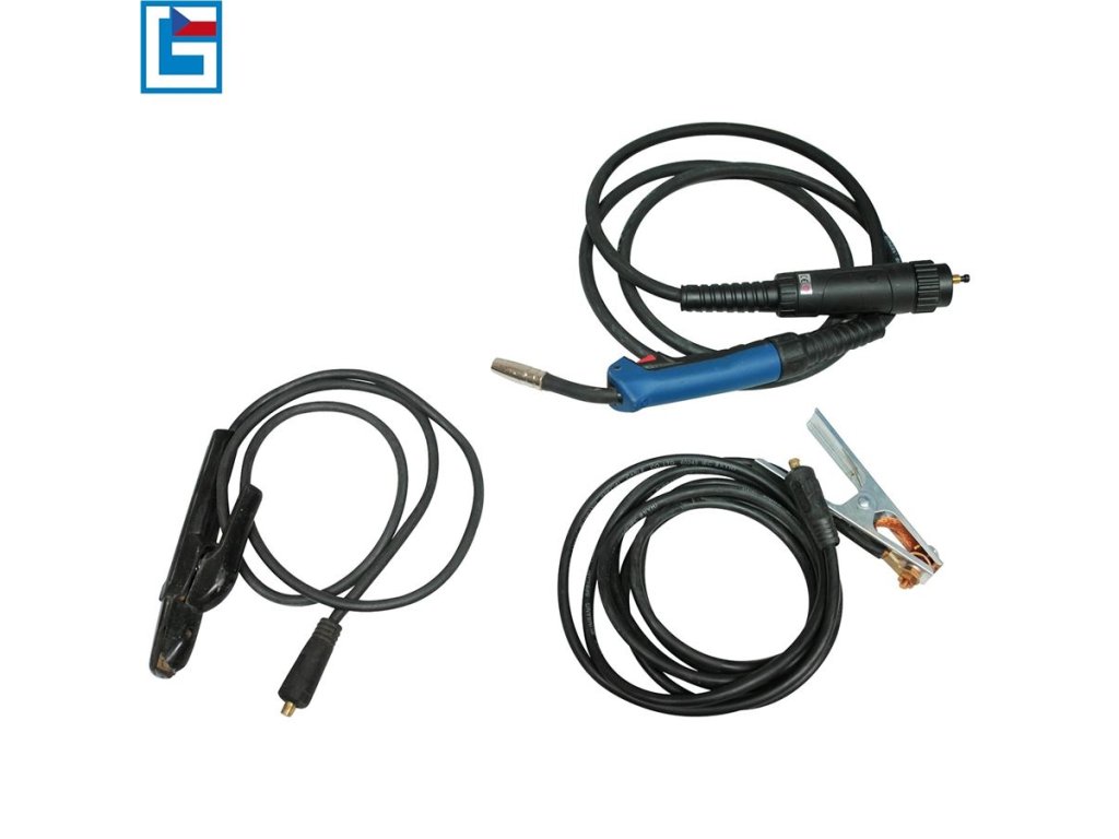 Příslušenství: 3 m hořák MB 15 (-> „EURO konektor“), svářecí kabel s držákem elektrod/zemnicí kabel se svorkou (-> bajonetové přípojky DINSE 9), redukční ventil se 2 manometry, 2 m plynová hadice, 1 hubice/3 trysky (-> průměr: 0,6/0,8/1,0 mm), vozík pro plynové lahve 5/11/20 kg (-> celkové rozměry d x š x v: 820 x 420 x 820 mm).
