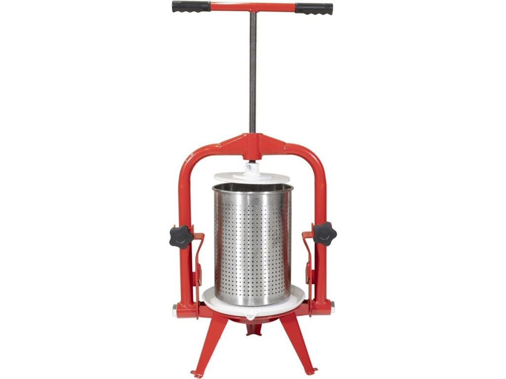 Ruční lis GÜDE, určený k domácí výrobě moštů nebo ovocných štáv.