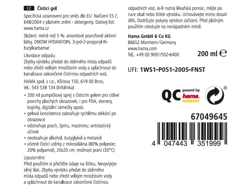- vhodný také na čištění PDA, skenerů, kopírovacích zařízení apod.