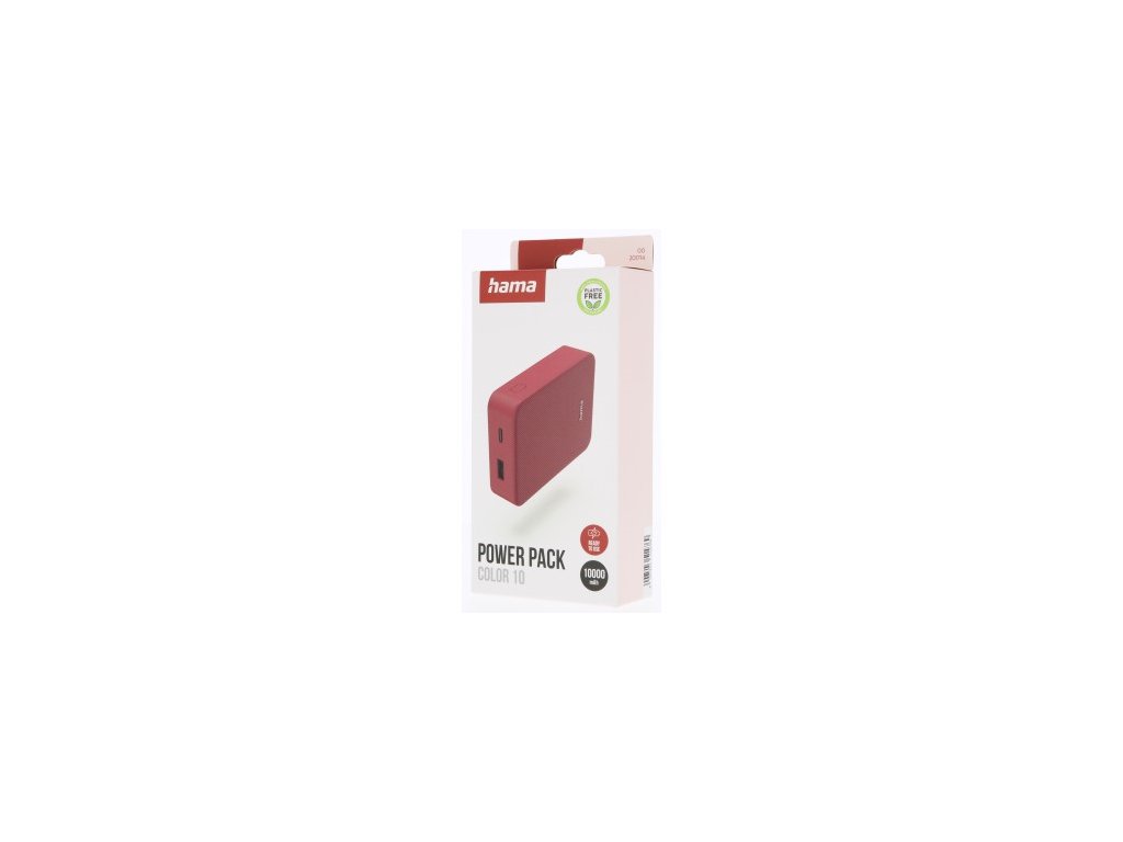 Hama Colour 10, powerbanka 10000 mAh, 3 A, výstup: USB-C, USB-A, červená