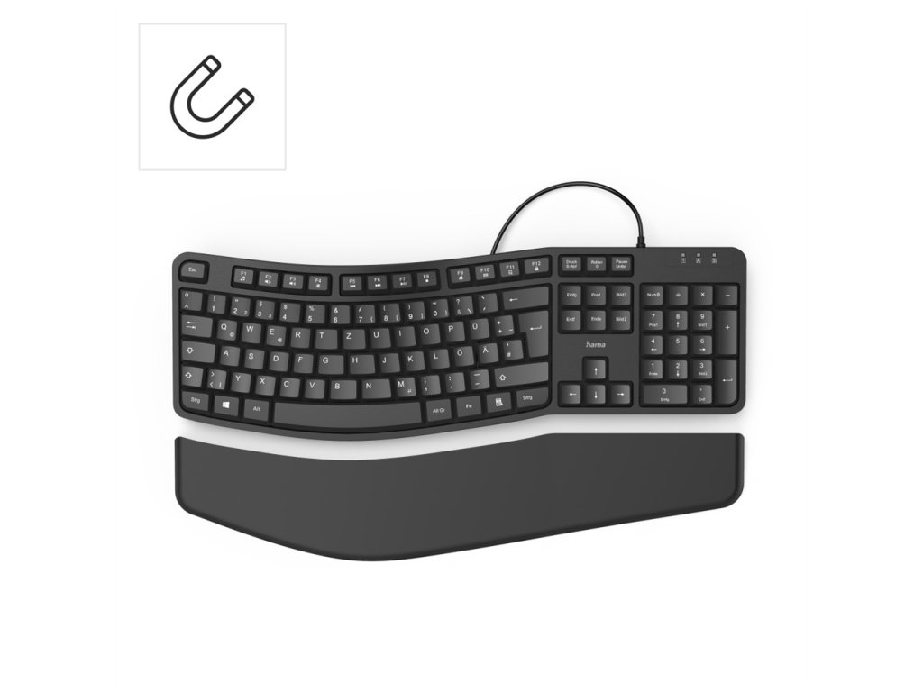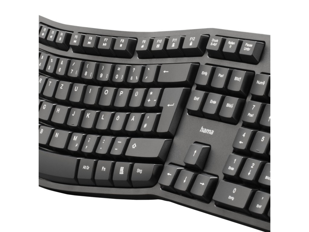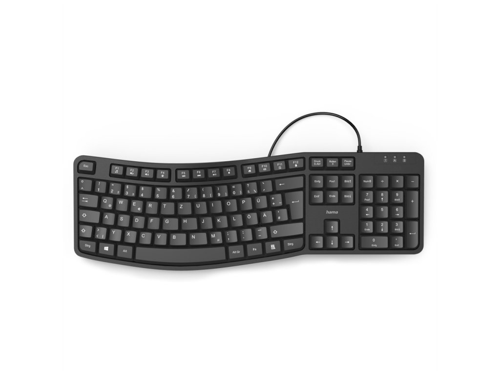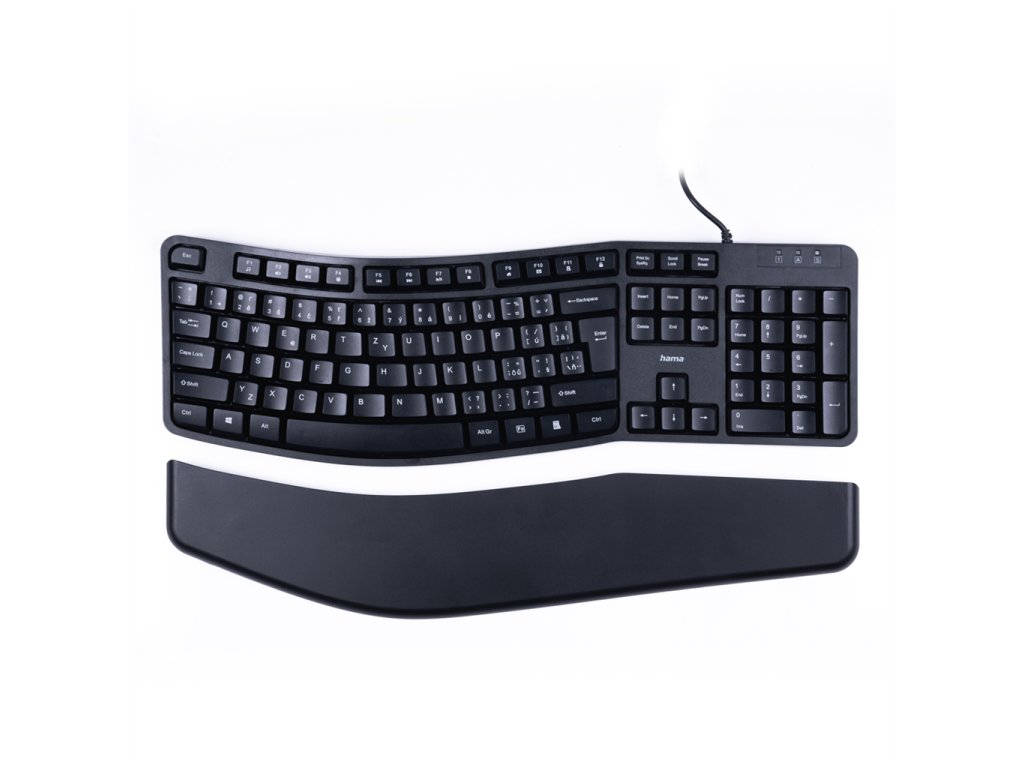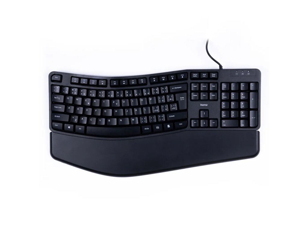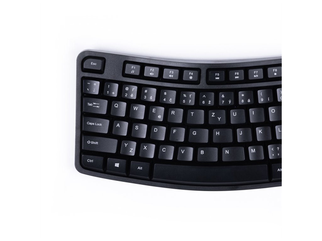 - ergonomicky tvarovaná klávesnice pro větší komfort a správné držení těla při práci, předchází bolestem a přetížení ramen a šíje
