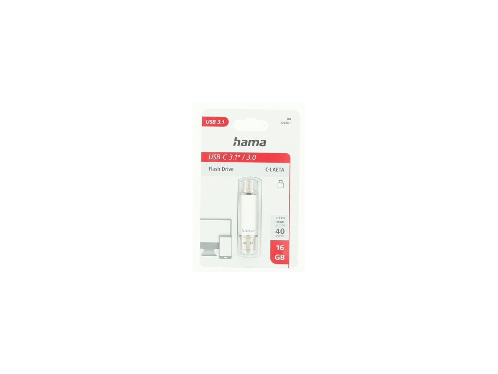 Hama Flash Pen Laeta, USB-C/USB-A 3.1, 16 GB, 40 MB/s, stříbrný