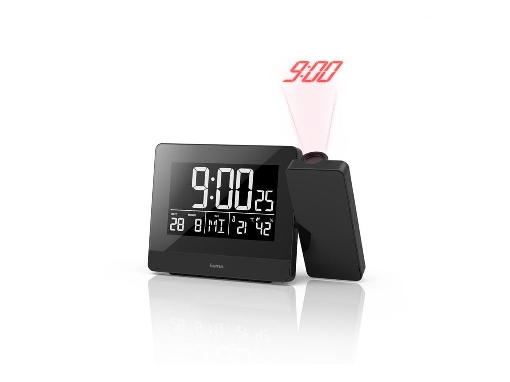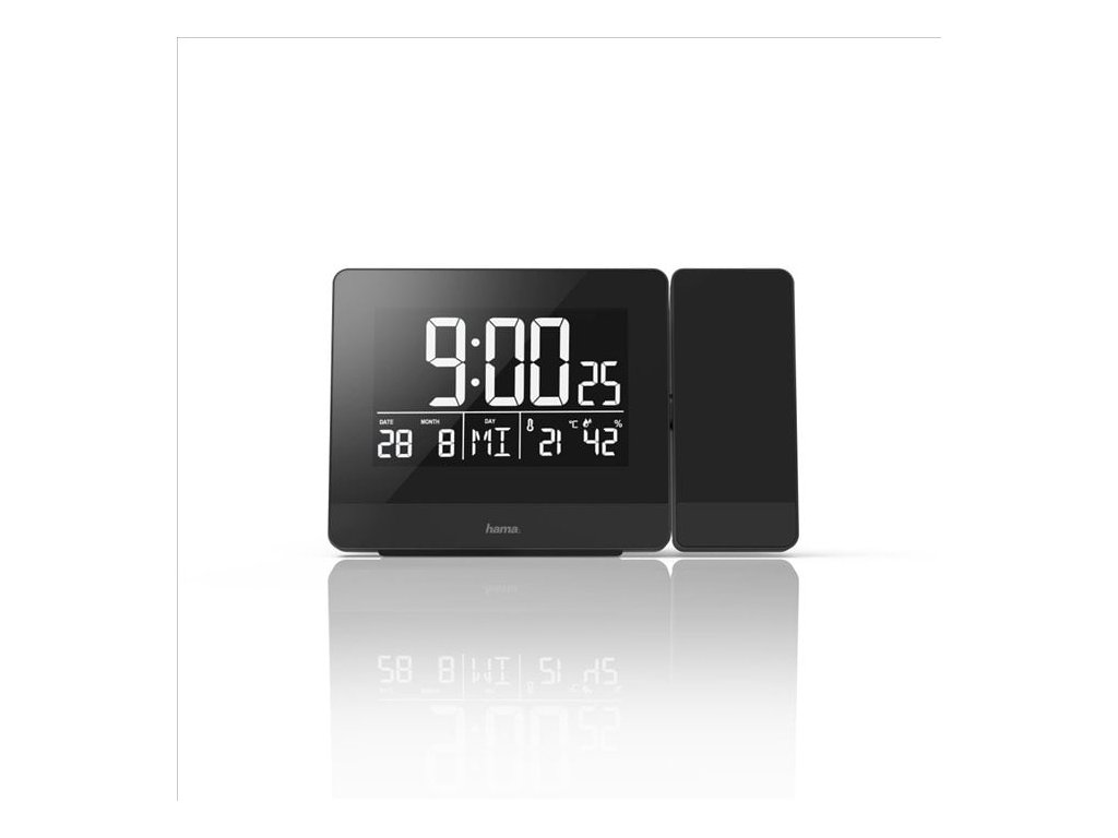 Přídavné funkce Hodiny řízené DCF signálem | Projekce | Teploměr (-9°C až + 50°C) | USB připojení pro napájecí kabel | Vlhkoměr