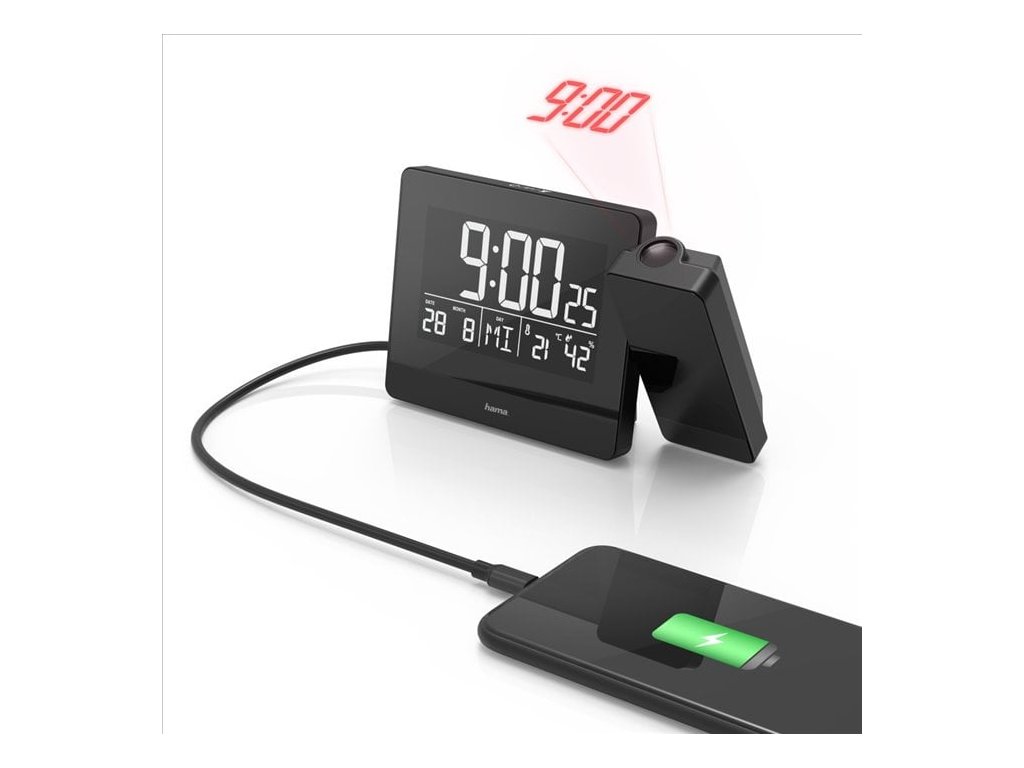 Hama Plus Charge, budík s projekcí času a USB konektorem pro nabíjení mobilu