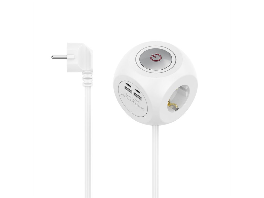 - 3zásuvkový prodlužovací přívod se čtyřmi USB zásuvkami a vypínačem