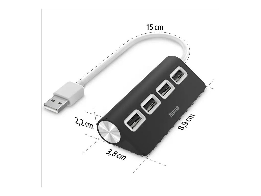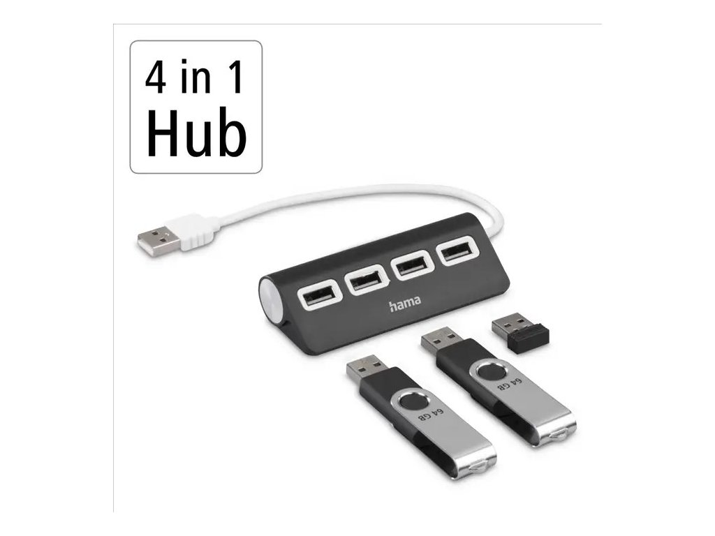 Hama USB hub, 4 porty, USB 2.0, černý