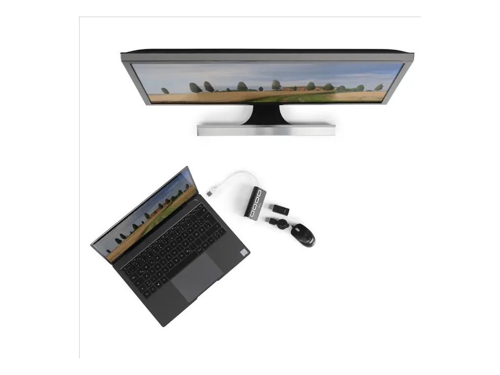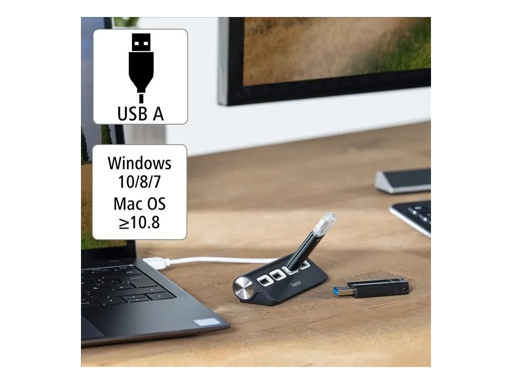 - pro připojení až 4 USB zařízení (např. myš, klávesnice, tiskárna, USB klíč) k jednomu USB portu