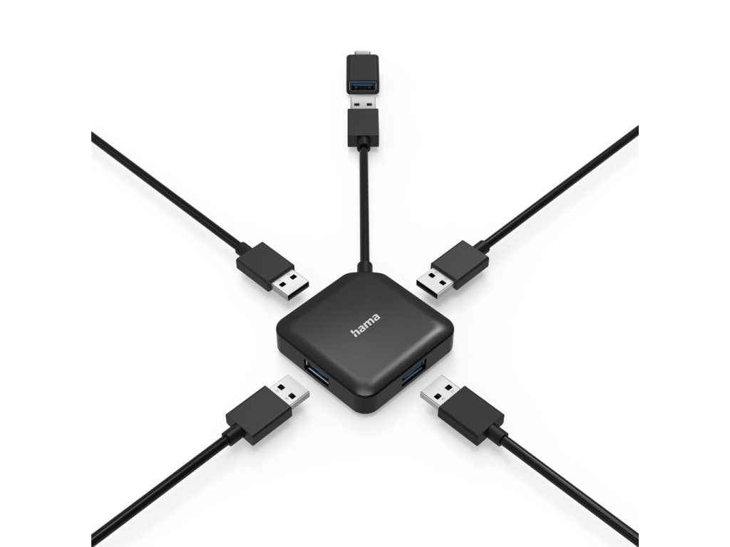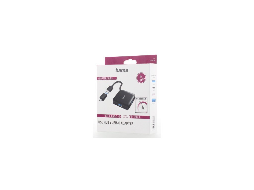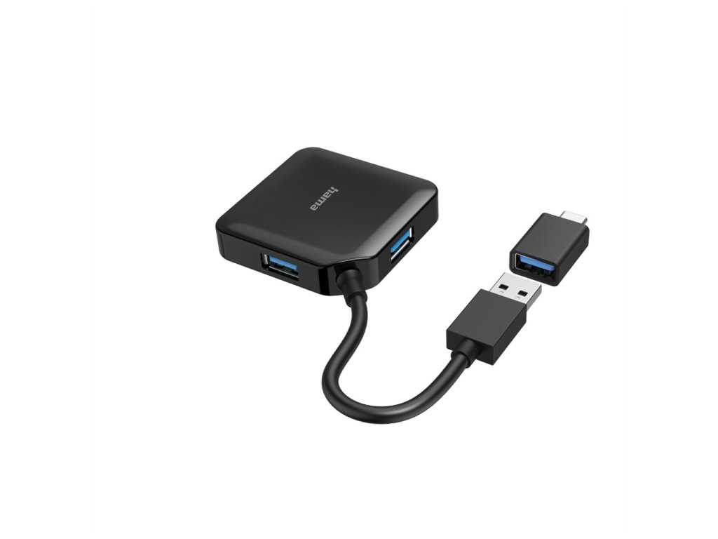 Hama USB hub, 4 porty, USB 3.2 Gen 1, USB-C adaptér