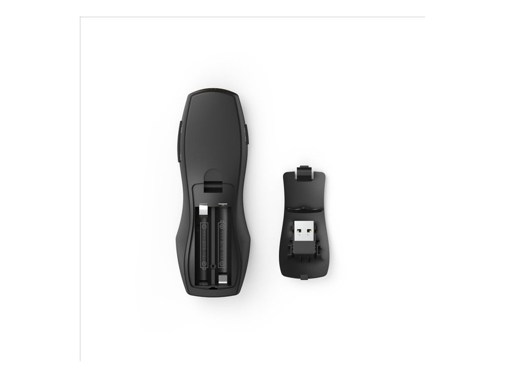 - Air mouse: funkce myši, ovládání kurzoru pohybem prezentéru, levé a pravé tlačítko