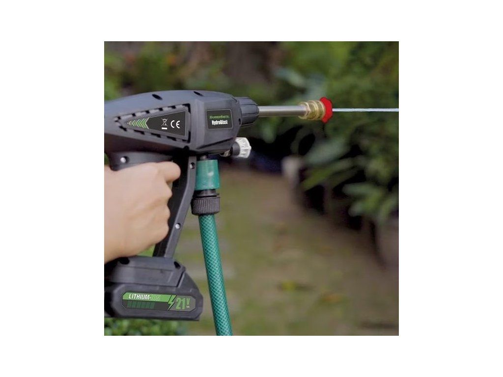 Akumulátorová tlaková čisticí pistole s přípojkou na zahradní hadici