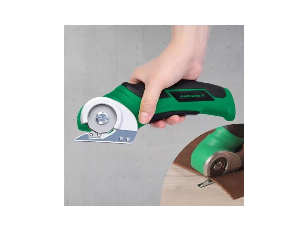 Hammersmith SharpSpin elektrický akumulátorový rotační řezač spojuje funkčnost a komfort v kompaktním zařízení. Vyměnitelný kruhový nůž zajišťuje přesné výsledky při řezání kartonu a obalů, pravé či umělé kůže, PVC krytiny, koberců, tapet i plastů. Spolehlivě si poradí i s materiály o tloušťce až 6 mm.