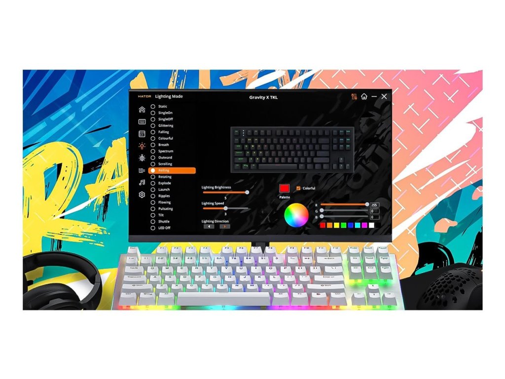 HATOR Gravity X TKL – Kabelová mechanická herní klávesnice s RGB podsvícením