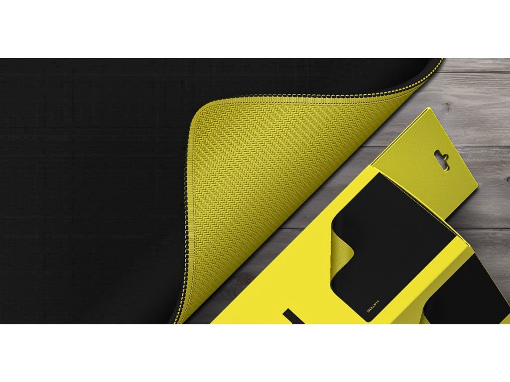 Herní podložka pod myš • Velikost XXL (900 × 420 × 4 mm) • Optimalizovaný povrch pro dynamické i přesné pohyby • Protiskluzová gumová základna • Laserem řezané okraje proti roztřepení • Vodoodpudivá úprava • Černá se žlutým základem