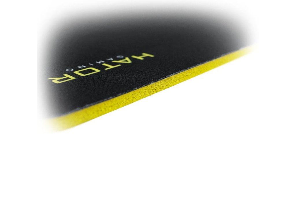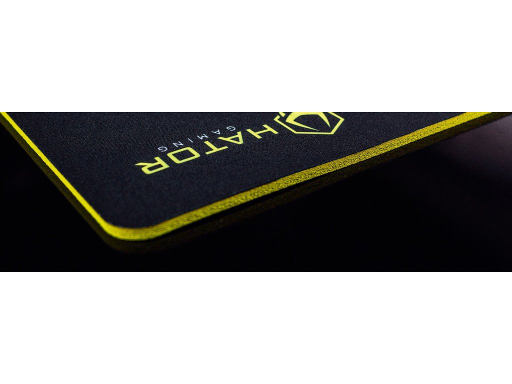 Herní podložka pod myš • Velikost XXL (900 × 420 × 4 mm) • Optimalizovaný povrch pro dynamické i přesné pohyby • Protiskluzová gumová základna • Laserem řezané okraje proti roztřepení • Vodoodpudivá úprava • Černá se žlutým základem