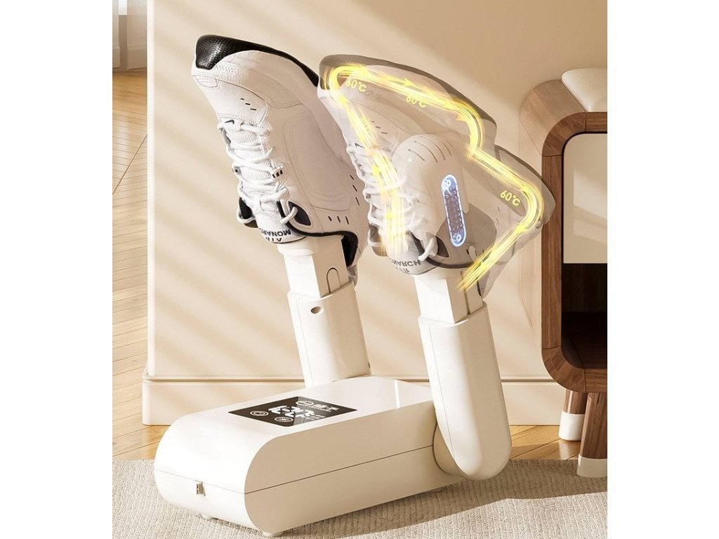 Moderní elektrický vysoušeč obuvi s UV sterilizací a uhlíkovými filtry pro komplexní péči o obuv.