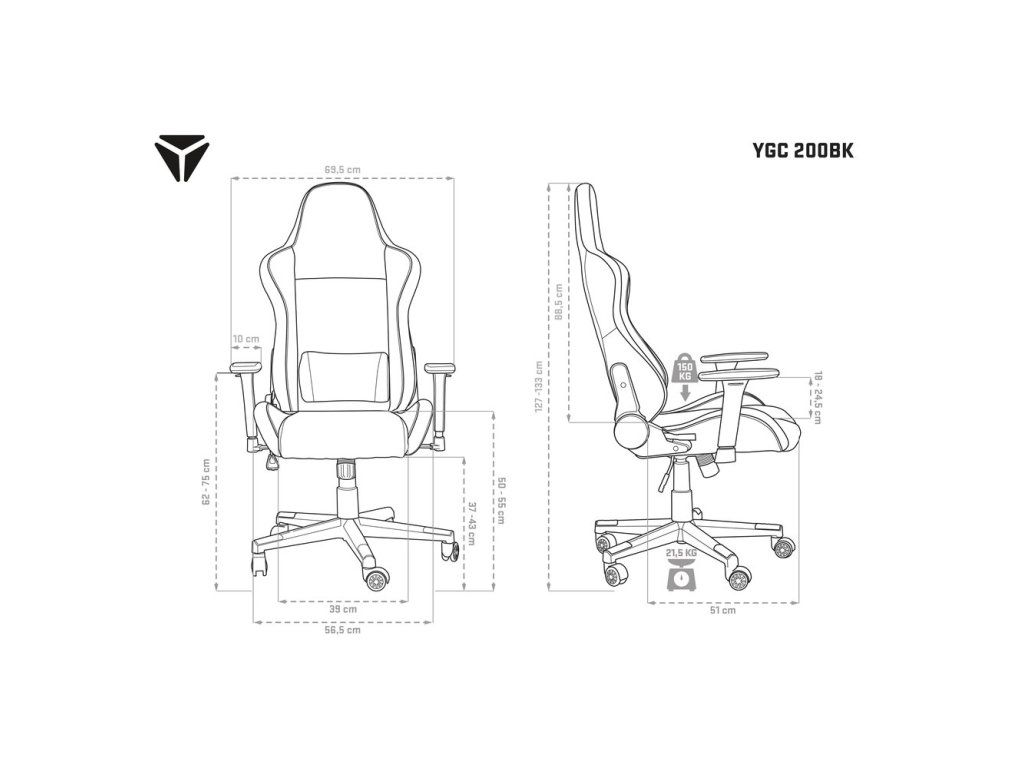 YENKEE YGC 200BK FORSAGE Herní židle / křeslo FORSAGE, Maximální komfort a variabilní nastavení, Odolná PU kůže a polstrování z tvarované pěny, Pevný kovový rám a stabilní pětiramenná základna