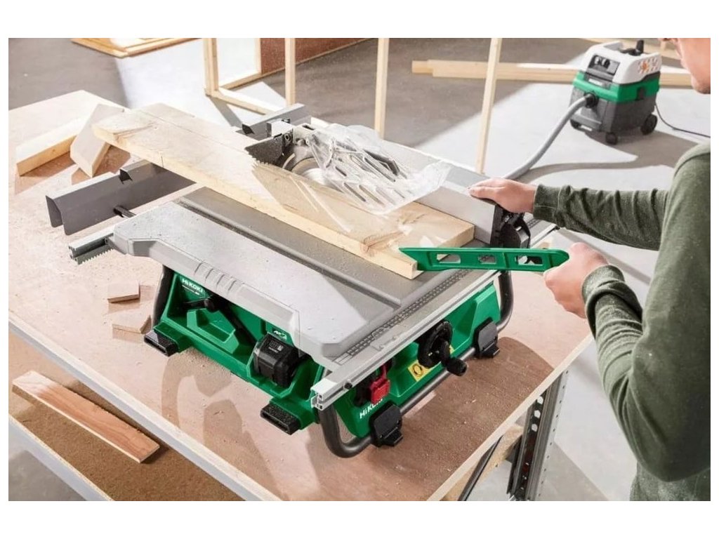 Pila je vybavena otvorem pro odsávání a řadou bezpečnostních prvků, jako například západkou proti zpětnému rázu nebo automatickým vypnutí v případě přetížení.