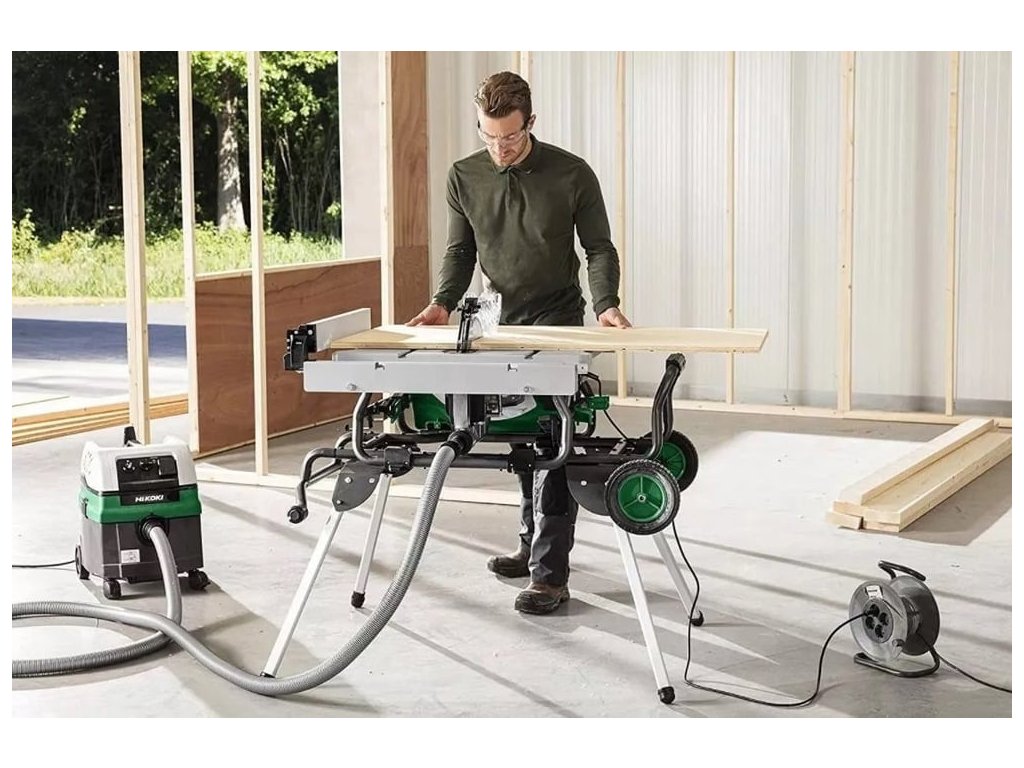 Stolní okružní pila, příkon 1500 W, max. hloubka řezu 79 mm, průměr kotouče 254 mm, stabilní trubkový stojan, napájení 230 V.
