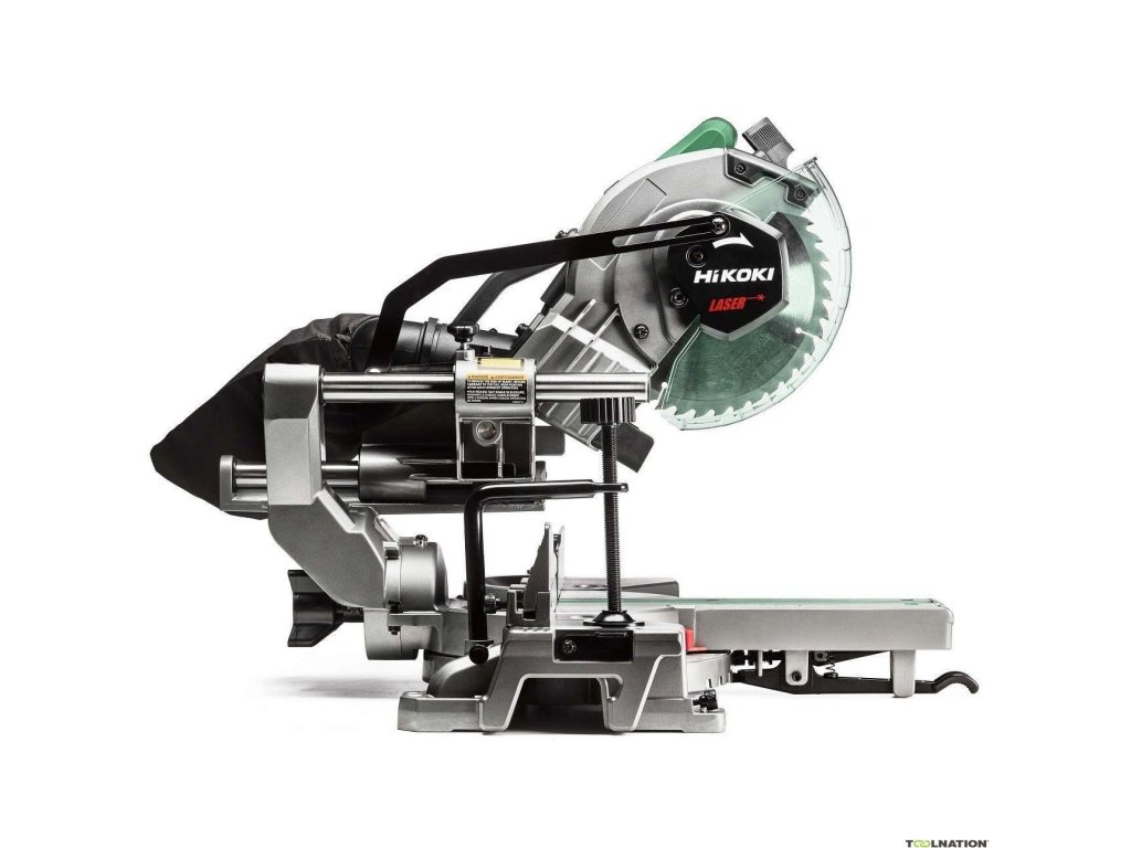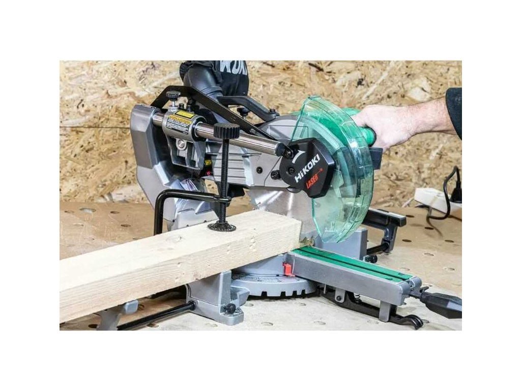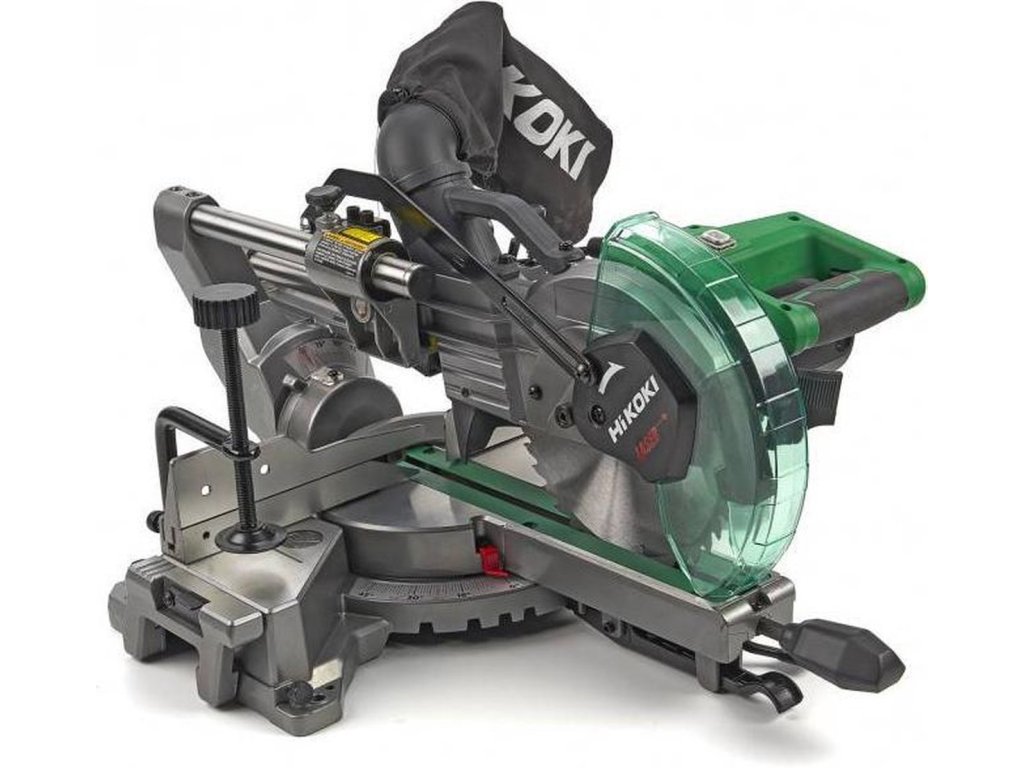 Pokosová pila Hikoki C8FSHGWAZ s příkonem 1100 W, dokonalou opakovatelností řezu, rukojetí typu Soft-grip, snadno přenosná, precizně zpracovaný odlitek stolu, aretací vřetene, zajištěné blokování stolu v devíti pozicích, levým a pravým otáčením stolu 0–57°, náklonem vlevo 0–48°, uložením vodících tyčí pojezdu v lineárních ložiscích, 5300 otáček za minutu, průměr pilového kotouče 216 mm a hmotností 13,8 kg.