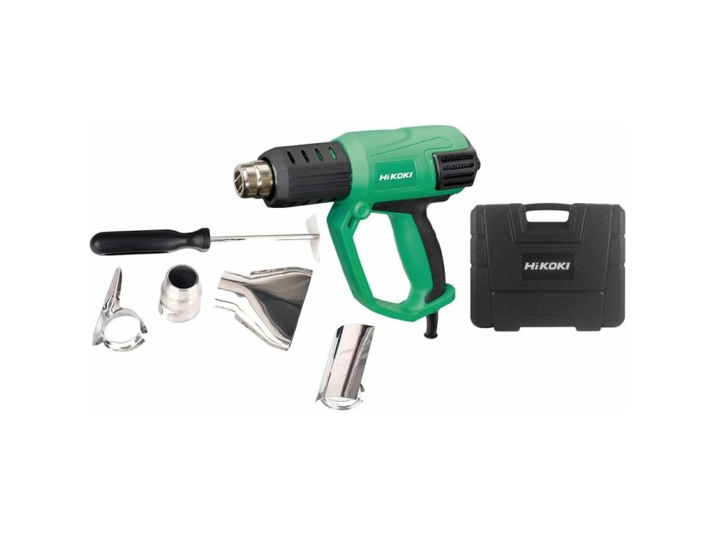 Horkovzdušná pistole, příkon: 2000 W, objem vzduchu: 0,25 - 0,5 m3/min, teplota vzduchu: 50-650 °C, hmotnost: 0,79 kg.