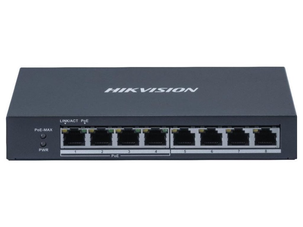 Hikvision DS-3E0508P-O je gigabitový PoE switch s 8 porty (4x PoE), podporující 802.3af/at, s celkovým výkonem až 60 W. Nabízí snadnou Plug and Play instalaci, kovové provedení a kapacitu 16 Gbps, ideální pro LAN sítě.