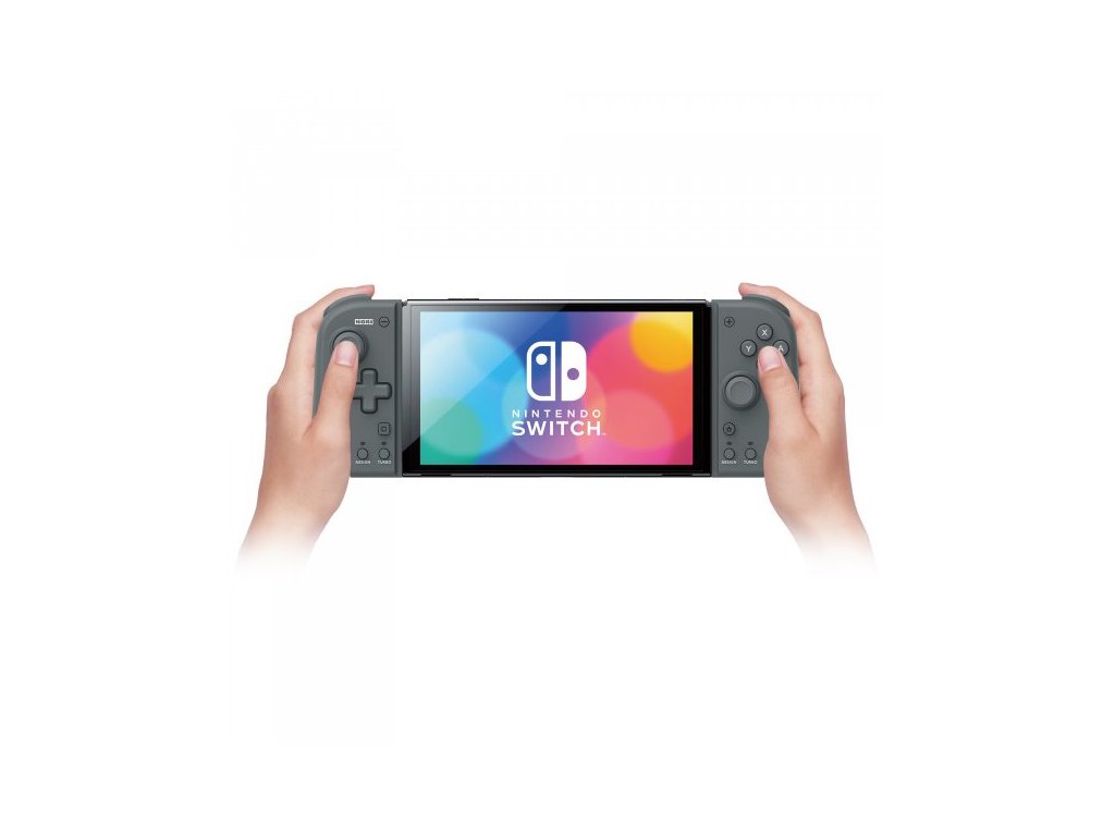 Ovladače pro Nintendo Switch/Switch OLED, ergonomický design, náhrada za Joy-Con (neobsahuje pohybové ovládání, HD Rumble, IR ani NFC), s nástavcem lze použít i jako dedikovaný ovladač, D-pad, zadní tlačítka, funkce Turbo, šedé